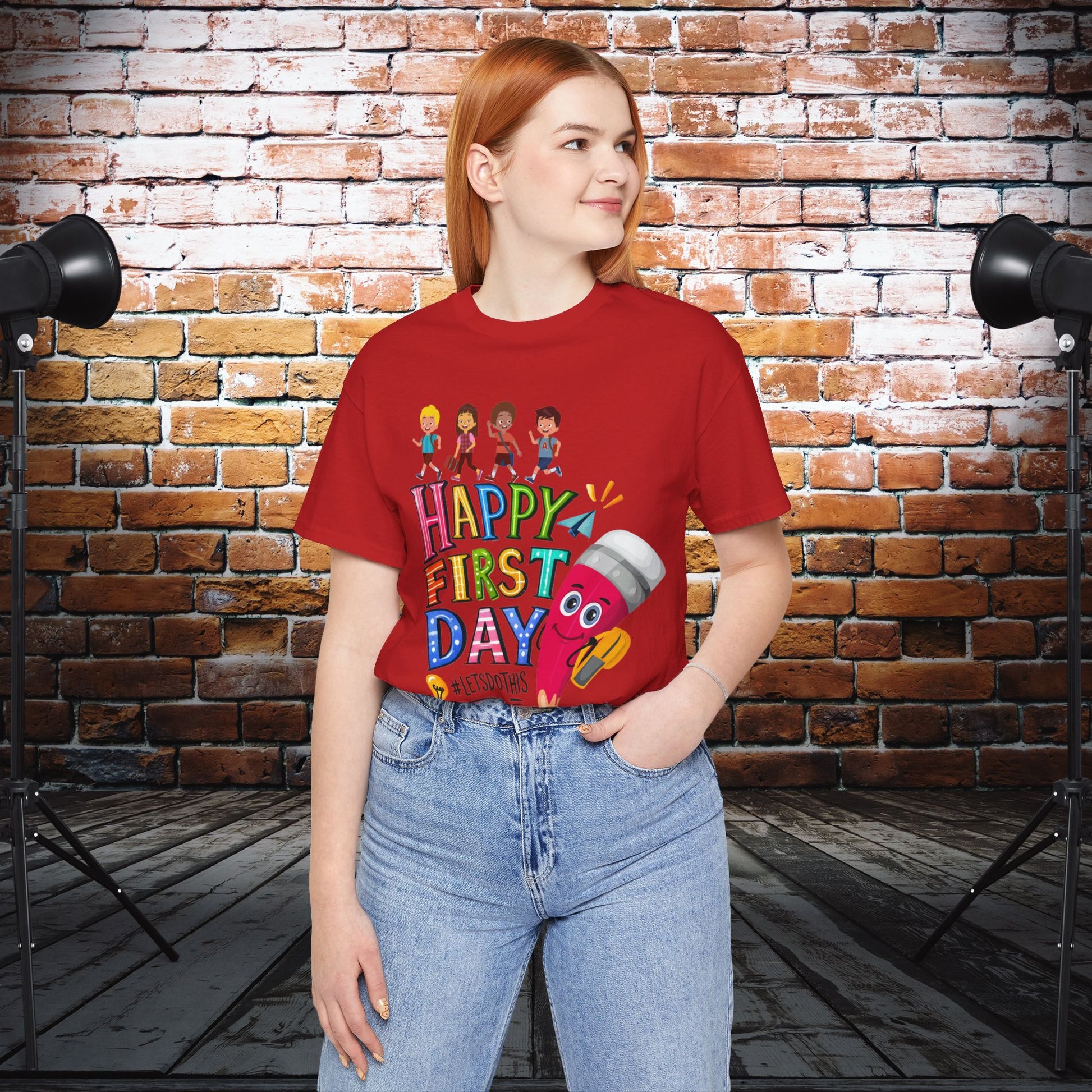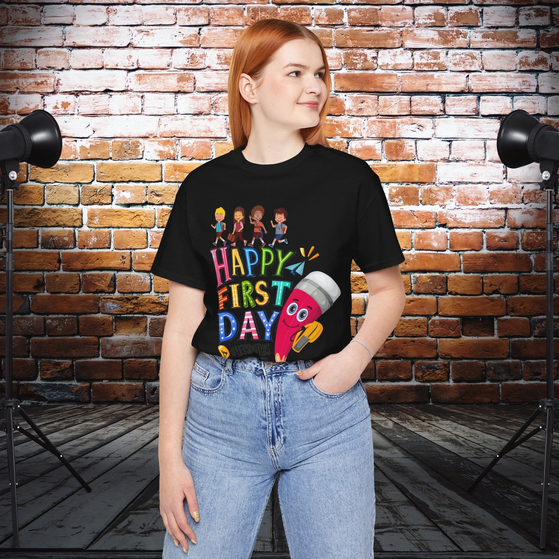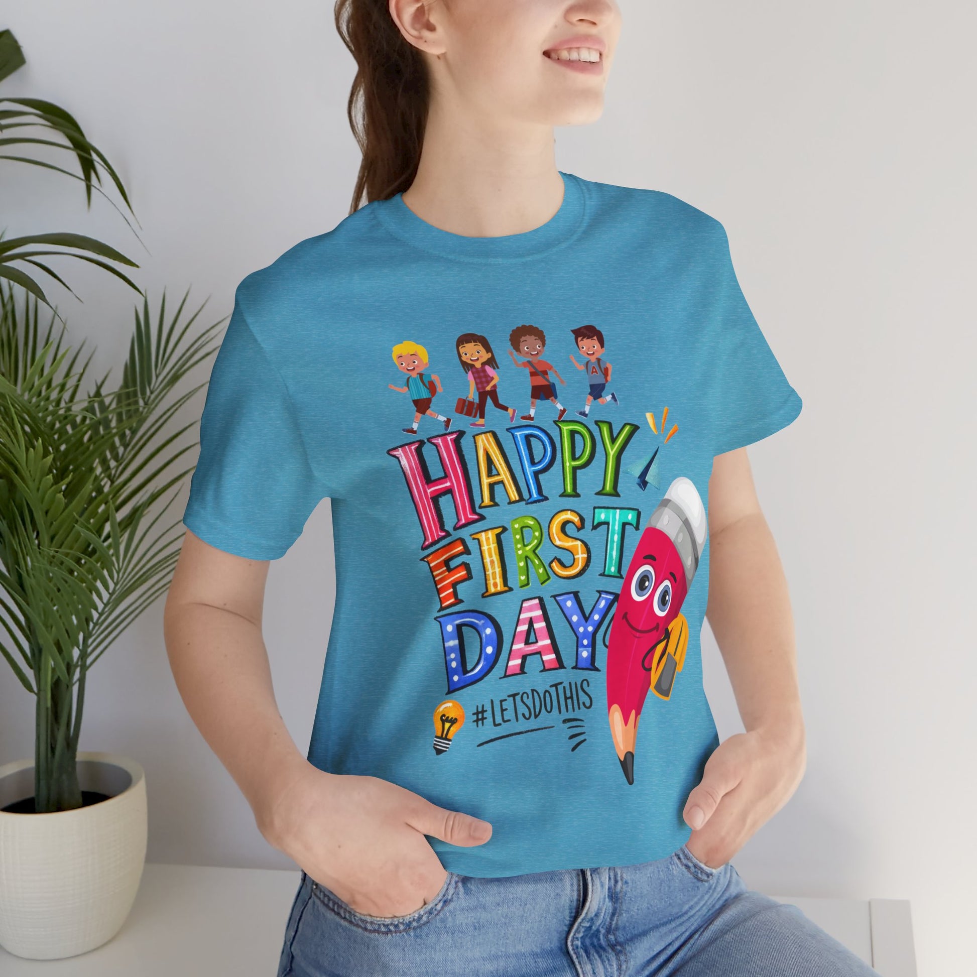 Happy First day T-Shirt, Hello Teacher T-Shirt, Back To School T-Shirt, Teach Love Inspire Teacher Shirt, Teacher Back To school unisex jersey short sleeve.First Day Vibes T-Shirt.